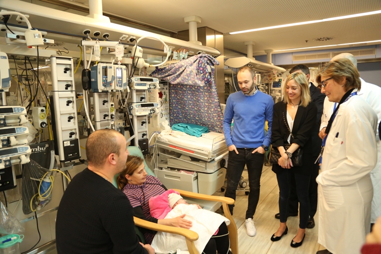 Andrés Iniesta ha visitat el Servei de Neonatologia de Vall d’Hebron per donar suport a la campanya “Amb tu, com a casa”