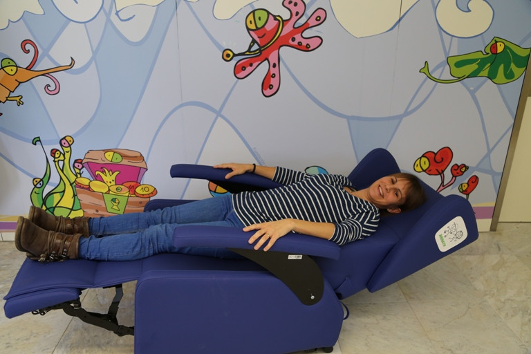 Les butaques han estat dissenyades per posar-se totalment planes, convertint-se així en un llit, que afavoreix al descans de les famílies que acompanyen els nens i nenes durant la seva etapa a l'hospital.