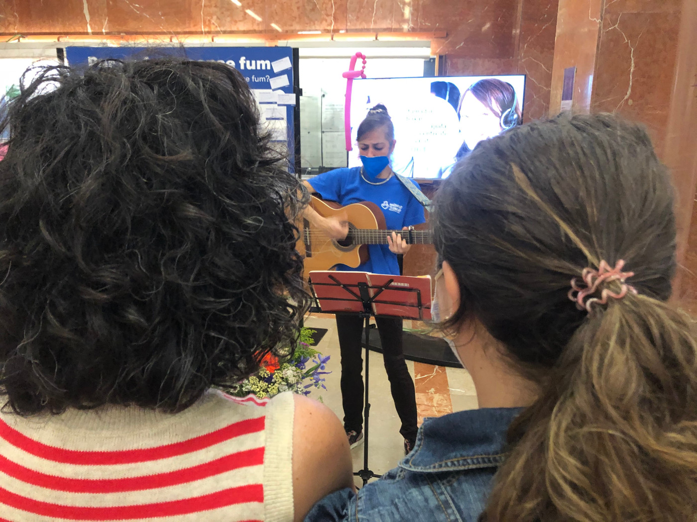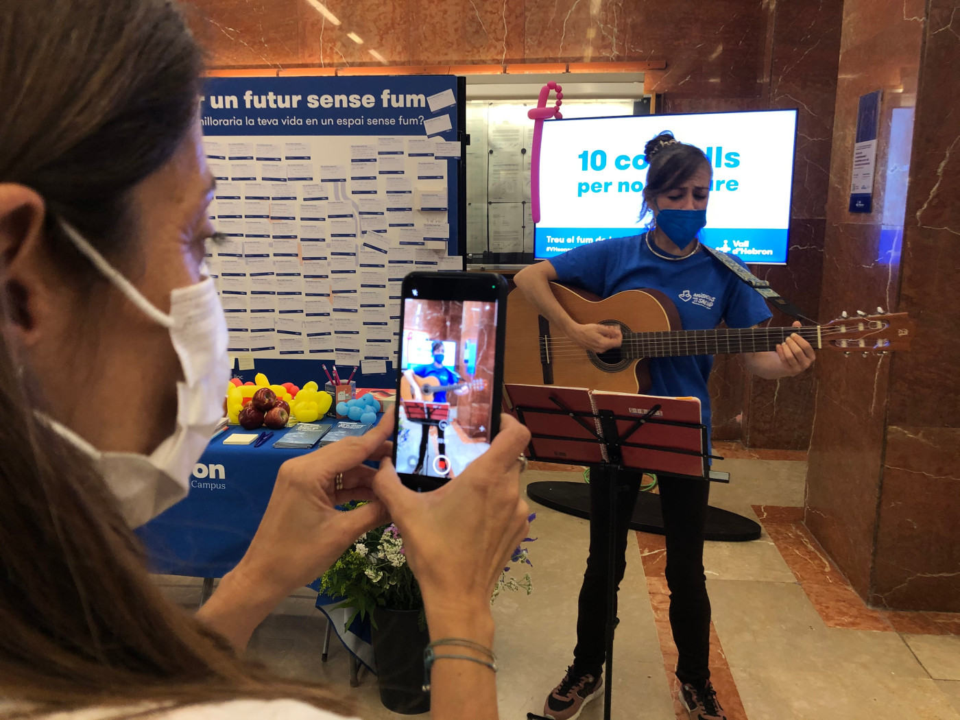 Al migdia, l’activitat ha acabat amb un petit concert de guitarra per part de Judit Vaz, membre de l’entitat “Músicos por la salud”, que ha tocat dues peces relacionades amb la vida i la salut. A més, com cada any, els nens i nenes ingressats a l'Hospital Infantil han fet dibuixos reflectint com s'imaginen el futur sense el fum del tabac. Els dibuixos s'han penjat en una graella situada al vestíbul de l'Hospital Infantil i els millors s'han endut un premi.