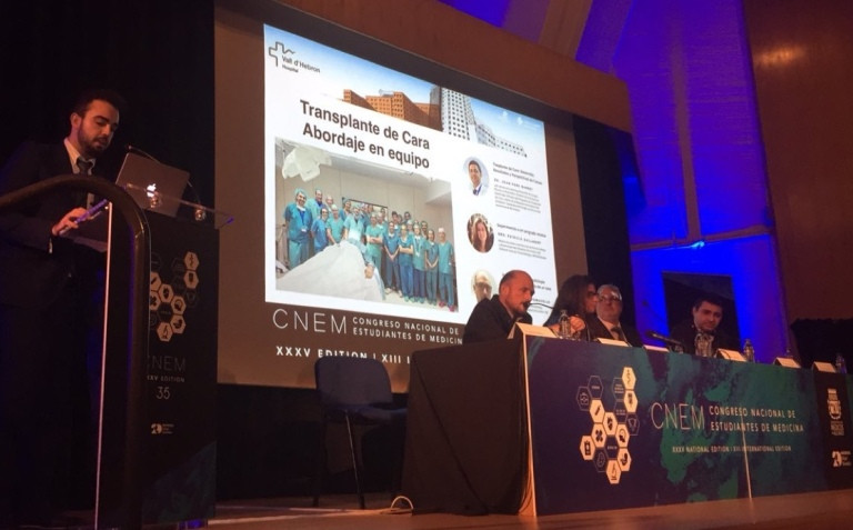 Durant el Congrés Nacional d’Estudiants de Medicina, celebrat a la Universitat Miguel Hernandez d’Elx entre el 25 i el 27 d’octubre, tres experts de Vall d’Hebron van presentar una ponència conjunta titulada “Medicina en equip: abordatge multidisciplinari en un transplantament de cara”, en el marc de la taula rodona especial.