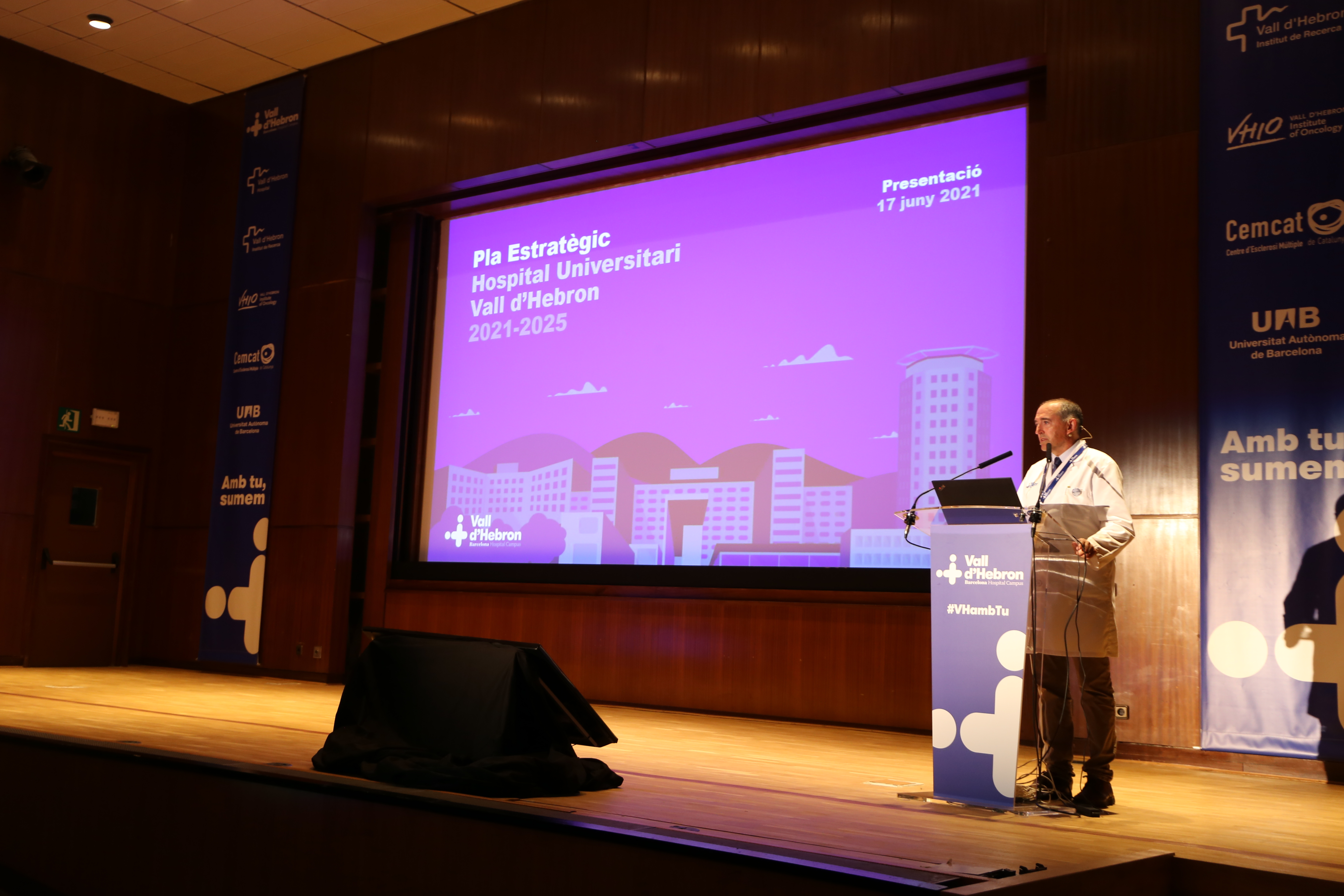 Avui, el Dr. Albert Salazar, gerent de Vall d’Hebron, ha presentat el nou Pla estratègic de l'Hospital Universitari Vall d'Hebron 2021-2025, un Pla que ha definit com a “ambiciós”. “Pacients, professionals i institució es mereixen l’esforç que hem invertit en l’elaboració d’aquest projecte”, ha afirmat. L’acte, que ha tingut lloc a la sala d’actes del Pavelló Docent i s’ha pogut seguir presencialment i en línia, ha començat amb unes paraules de Yolanda Lejardi, la nova directora gerent de l’Institut Català de la Salut, que ha felicitat Vall d’Hebron per “haver estat capaç d’elaborar el Pla en una època tan complicada com aquesta, marcada per la pandèmia de COVID-19”.