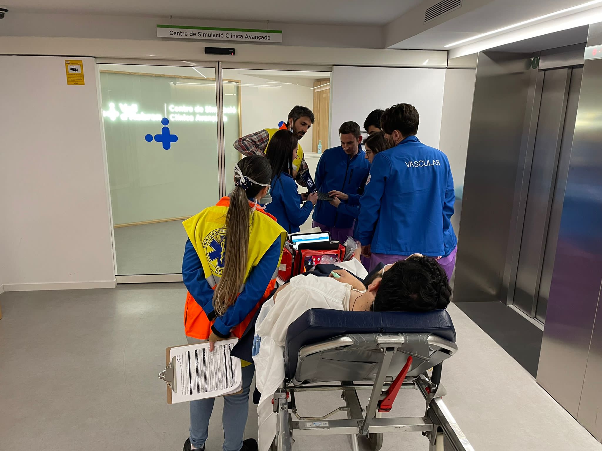 Són les 22.00 hores del 29 de març. Els 16 alumnes de la II Edició del Curs V360 de simulació en Cirurgia Vascular, organitzat pel Dr. Sergi Bellmunt, cap del Servei d'Angiologia, Cirurgia Vascular i Endovascular de l'Hospital Universitari Vall d'Hebron, acaben d’arribar a les habitacions de l’hotel on s’allotjaran els tres dies que dura la formació. Com a lot de benvinguda, sobre el llit, troben un pijama de quiròfan de Vall d’Hebron. No tenen temps a treure’s les sabates perquè tot seguit reben un missatge al telèfon que diu que un transport els espera a l’entrada de l’hotel doncs està arribant una urgència a l’Hospital Universitari Vall d’Hebron. A l’heliport, es preparen per rebre un pacient greu que requereix l’atenció del Servei d’Angiologia, Cirurgia Vascular i Endovascular. Així comença la II Edició del Curs V360 de simulació de Cirurgia Vascular que s’ha celebrat a l’Hospital universitari Vall d’Hebron entre el 29 i 31 de març. “Es tracta d’un curs de simulació “360 graus”, on els alumnes fan pràctiques des de tots els punts de vista, a quiròfan, a l’àrea de simulació, a l’estabulari amb animals i a l’àrea de dissecció de cadàvers”, explica el Dr. Sergi Bellmunt. “Hi ha molts cursos i trobades que es poden seguir de forma presencial, en línia o en diferit, però el que diferencia aquest curs és que els alumnes venen a participar i ser els protagonistes”, destaca.