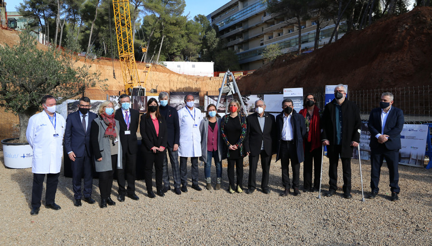Aquest matí s’ha celebrat l’acte de col·locació de la primera pedra del nou edifici de recerca de Vall d’Hebron, un edifici que tindrà 16.792 m2 construïts, enfront dels 4.600m2 actuals i que duplicarà la superfície destinada a laboratoris de recerca fins a arribar als 5.569m2. L’acte ha estat presidit per Josep Maria Argimon, conseller de Salut i Gemma Geis, consellera de Recerca i Universitats.