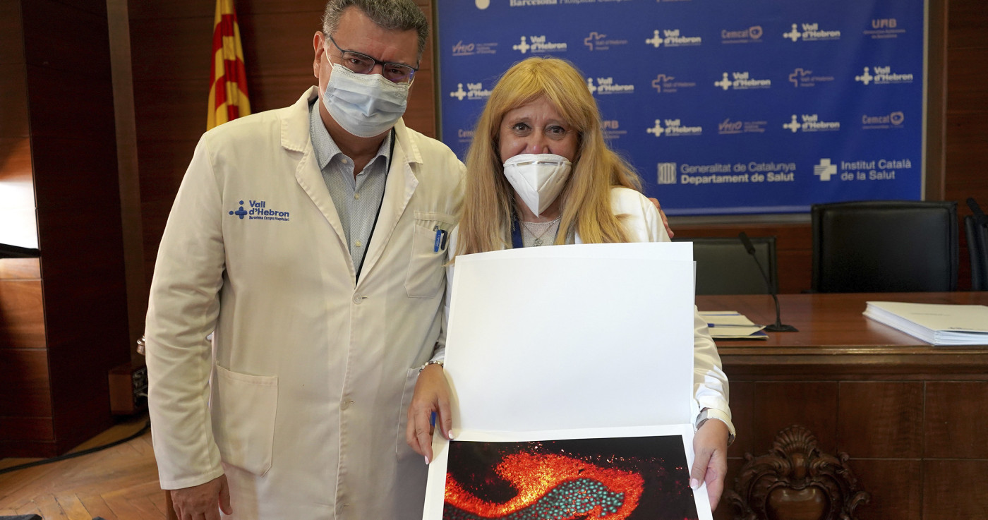 El Dr. Albert Salazar, gerent de l’Hospital Universitari Vall d'Hebron, i el Dr. Rafael Simó, adjunt a la Direcció en Recerca Clínica del Vall d'Hebron Institut de Recerca (VHIR), cap del Grup de Recerca de Diabetis i Metabolisme del VHIR i Cap de Servei Endocrinologia i Nutrició de l’Hospital Vall d’Hebron, han lliurat als guanyadors i guanyadores del Concurs Fotogràfic Vall d'Hebron la seva obra en format làmina. L’edició va ser un èxit de participació amb 41 fotografies per part de 20 autors a la categoria de Fotografia Científica i 37 fotografies de 20 autors a la de l’Hospital de les Persones.