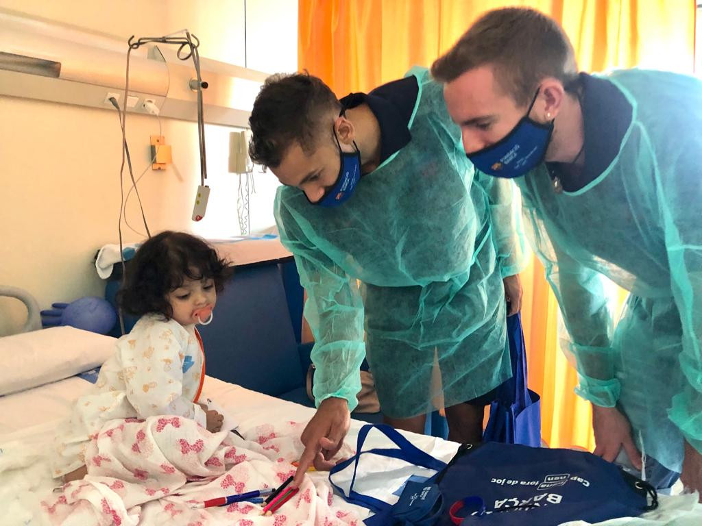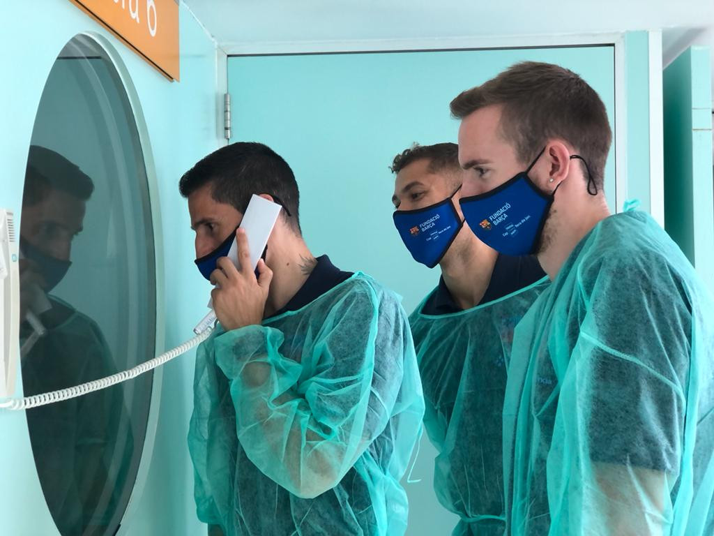 Tornen les visites del FC Barcelona a l'Hospital Vall d'Hebron amb la millora de la situació de la covid