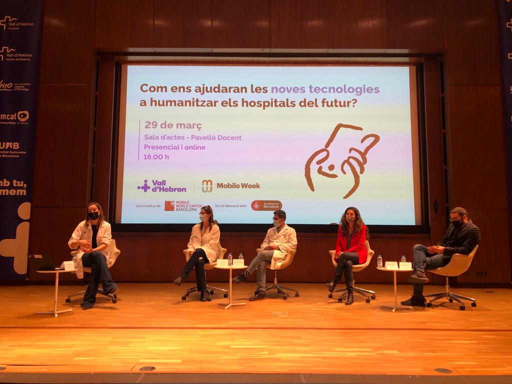 Aquesta tarda s’ha dut a terme a Vall d’Hebron la taula rodona titulada "Com ens ajudaran les noves tecnologies a humanitzar els hospitals del futur?". Aquest acte s’emmarca en la Mobile Week Barcelona, la iniciativa de Mobile World Capital que ofereix a la ciutadania un espai de reflexió i participació sobre la transformació digital i que es duu a terme aquesta setmana amb diferents conferències, tallers i activitats celebrades arreu del país. Aquest ha estat el cinquè any consecutiu que Vall d’Hebron acull un esdeveniment de la Mobile Week Barcelona.