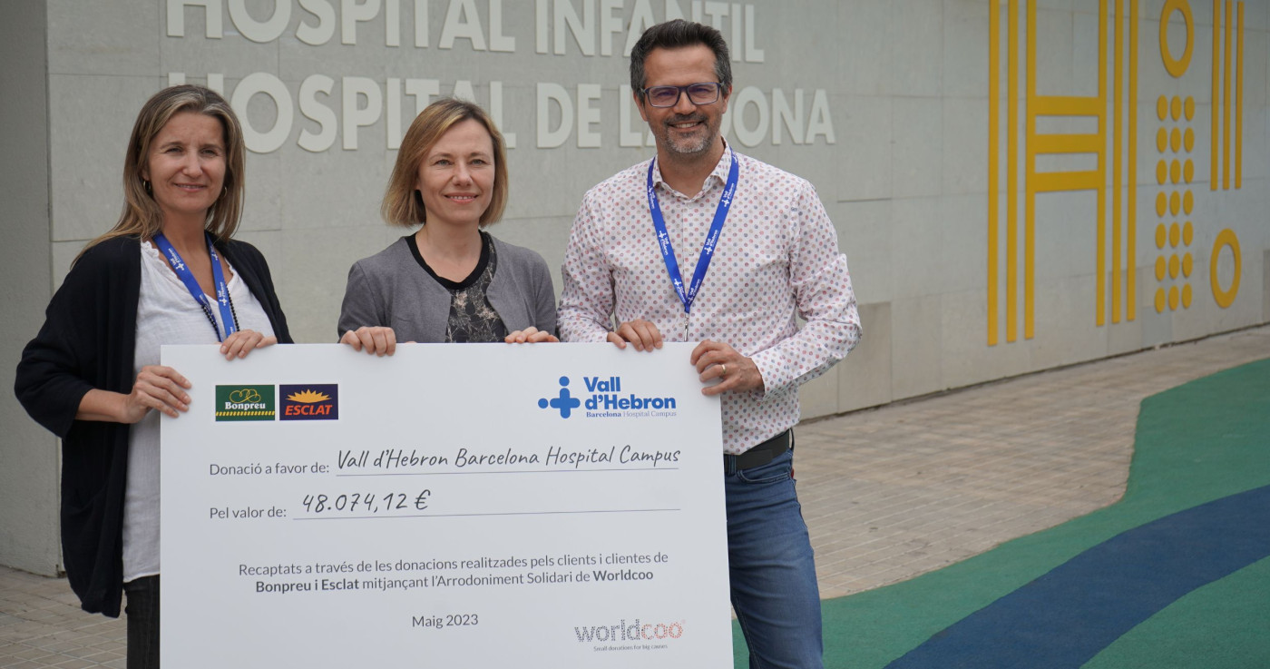 La campanya d’arrodoniment solidari de Bonpreu i Esclat s’ha dedicat aquest mes d’abril a un projecte del Vall d’Hebron Institut de Recerca (VHIR) i l’Hospital Universitari Vall d’Hebron per estudiar els trastorns del neurodesenvolupament dels infants amb cardiopaties congènites.  En total s’han recaptat 48.074 € gràcies a les aportacions de 270.489 donants. L’entrega del xec s’ha realitzat el dilluns 8 de maig al Campus de Vall d’Hebron.
