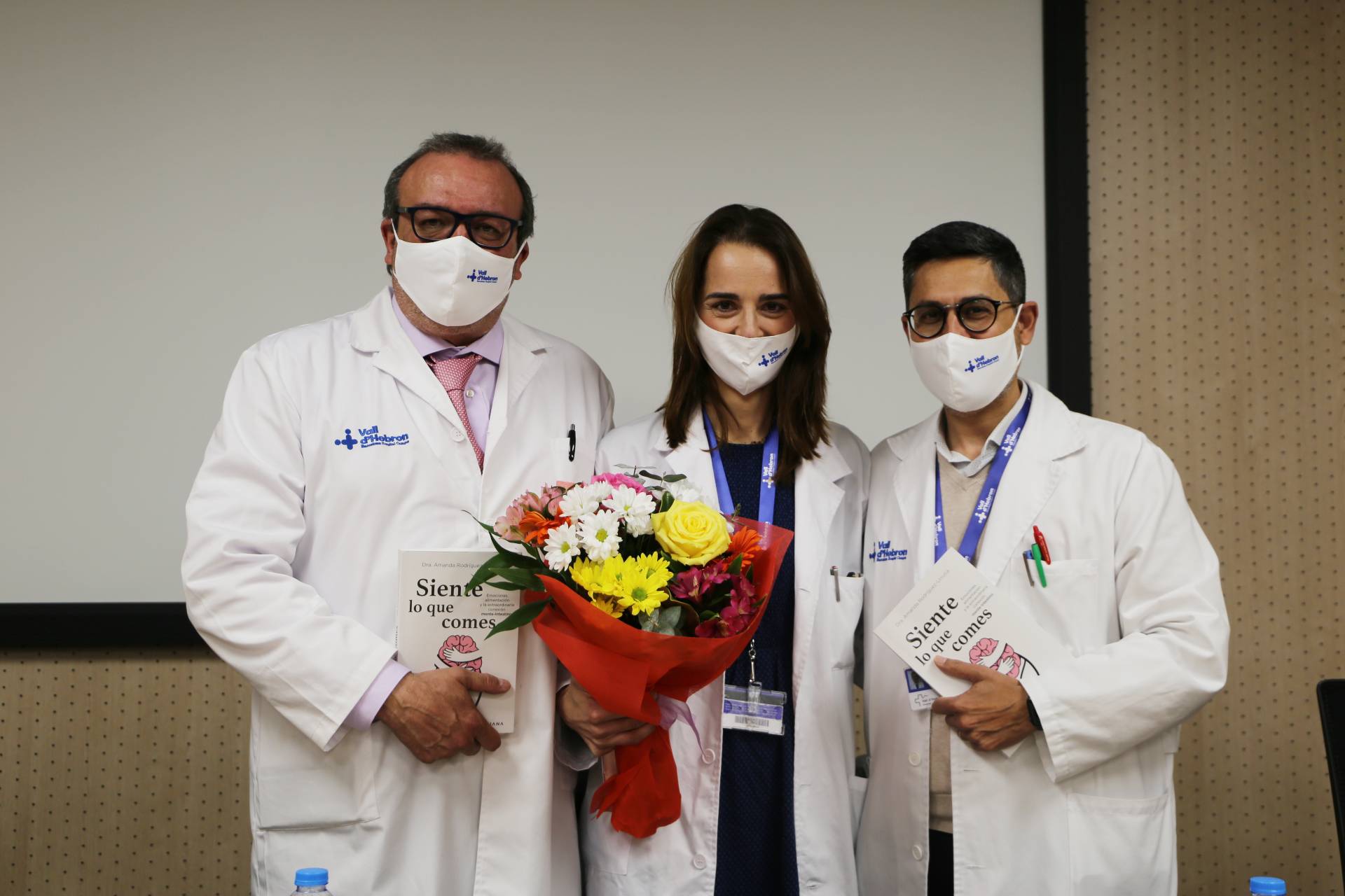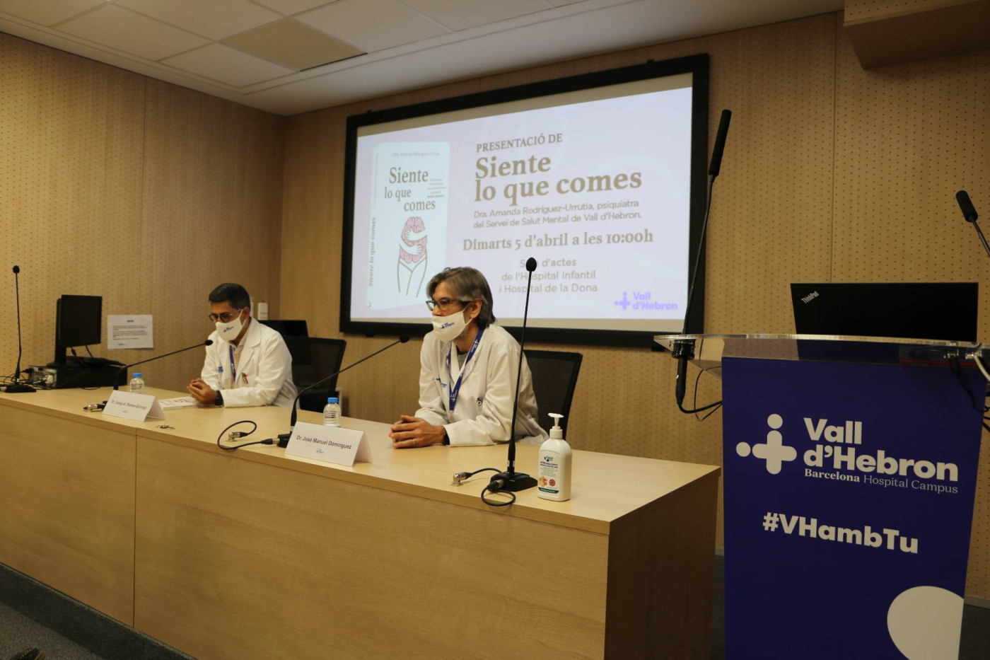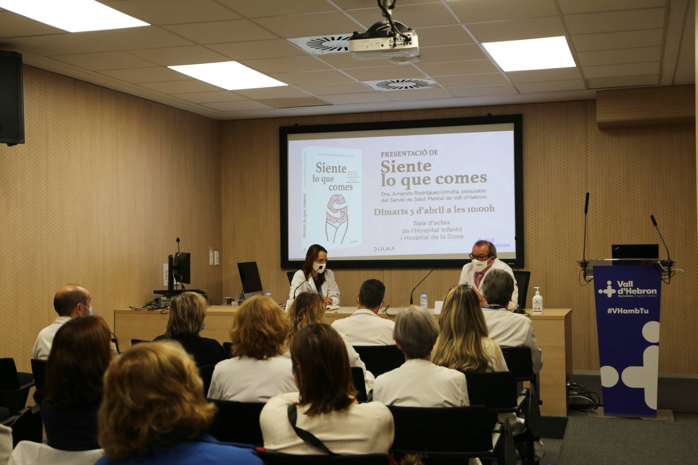 Durant l'acte de presentació del llibre, la Dra. Amanda Rodríguez ha estat acompanyada pel Dr. José Manuel Domínguez, subdirector assistencial, el Dr. Josep Antoni Ramos-Quiroga, cap del Servei de Salut Mental i cap del grup de recerca en Psiquiatria, Salut Mental i Addiccions del VHIR, i el Dr. Javier Santos, del Servei d'Aparell Digestiu i investigador principal del grup de recerca en Fisiologia i Fisiopatologia Digestiva del VHIR.