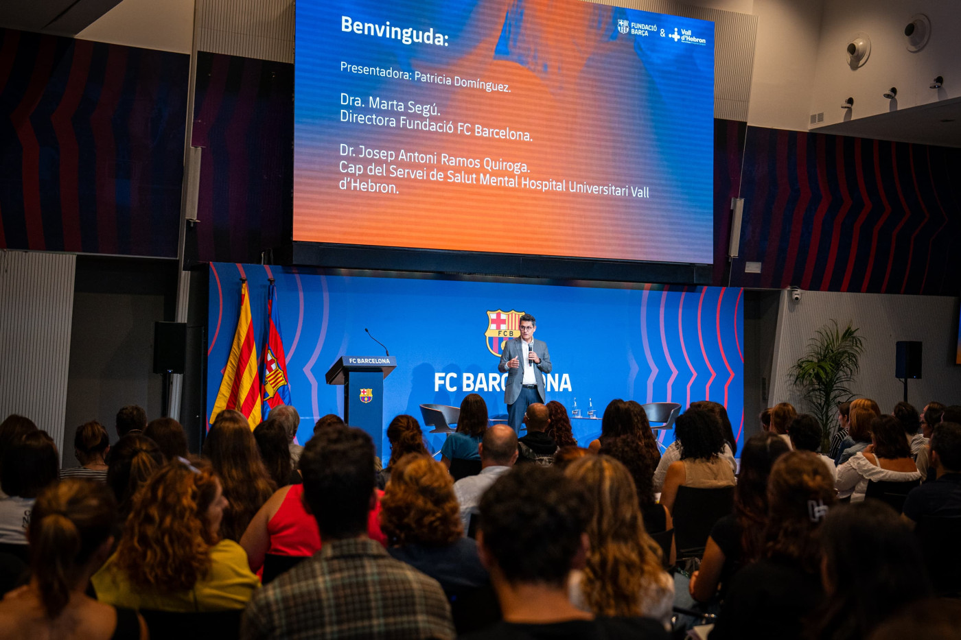 La inauguració de la jornada ha anat a càrrec de la Dra. Marta Segú, directora general de la Fundació FC Barcelona, i del Dr. Josep Antoni Ramos Quiroga, cap del servei de Psiquiatria de l’Hospital Universitari Vall d’Hebron.