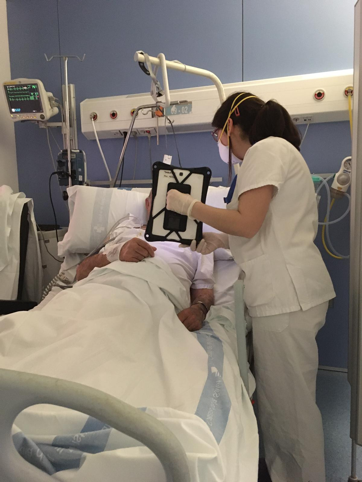 En un context en què, a causa de la COVID-19, Vall d’Hebron ha restringit les visites a l'Hospital General i a l'Hospital de Traumatologia, Rehabilitació i Cremats als pacients que estiguin al final de la vida, la Unitat d’Ictus ha posat en marxa videoconferències amb els familiars. Es tracta d’una iniciativa, promoguda per l’equip d’infermeria i auxiliars, que busca el contacte diari de la persona que es recupera d’un ictus amb els seus éssers estimats i que també es porta a terme amb pacients que pateixen epilèpsia o demències.
