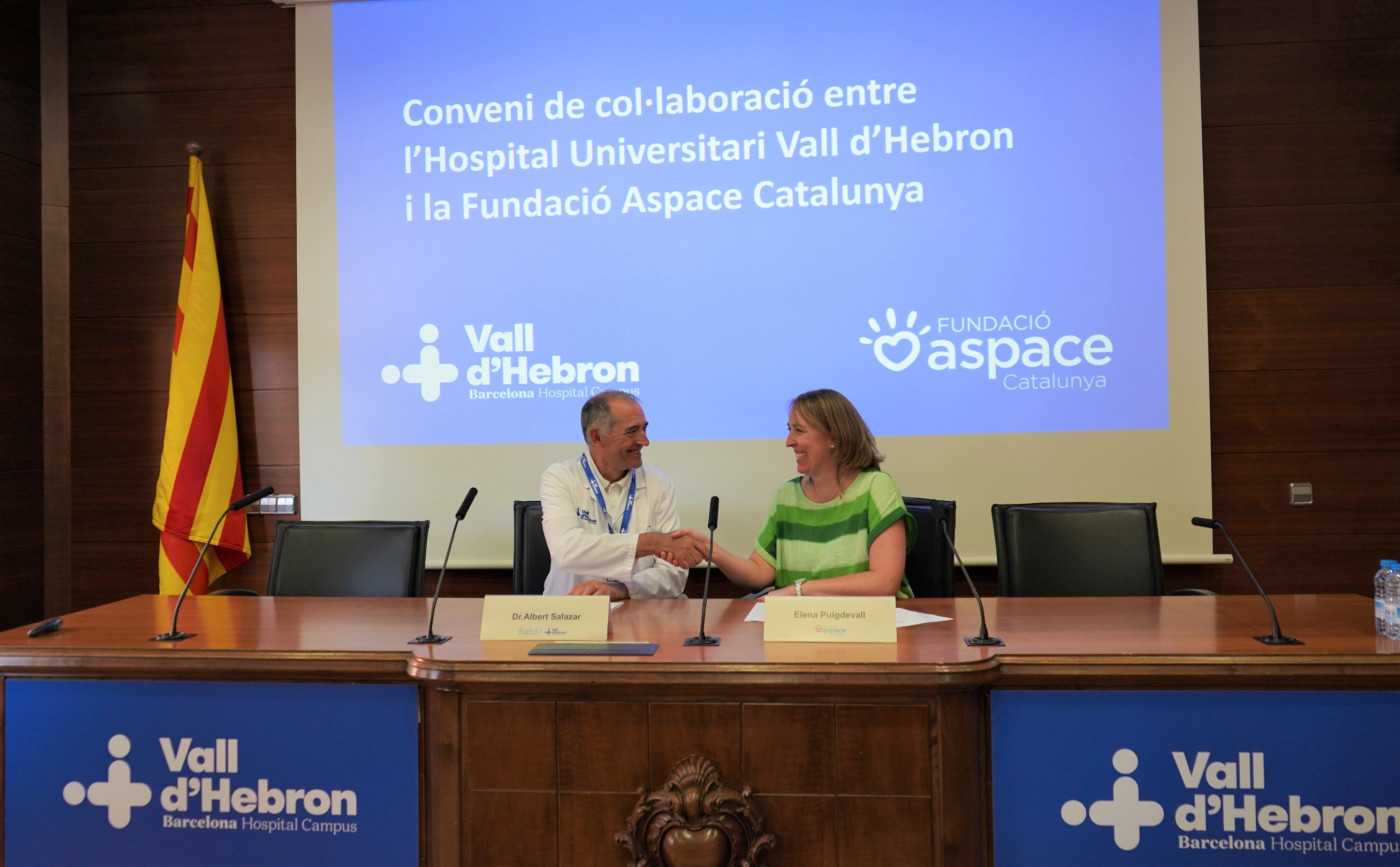 L’Hospital Universitari Vall d’Hebron i la Fundació Aspace Catalunya signen un conveni de col·laboració per a la millora de l’atenció integral i el benestar de les persones amb malalties del desenvolupament neurològic, paràlisis cerebral i pluridiscapacitat; així com l’atenció i suport a les seves famílies, amb caràcter multidisciplinari, amb llarg del cicle vital de les persones ateses.