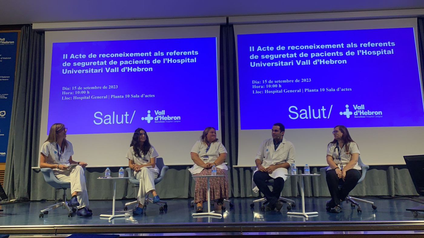 És en aquest context que l’Hospital Vall d’Hebron ha celebrat un Acte de Reconeixement als nostres professionals, referents de seguretat de pacients.  L’acte ha estat organitzat per la Unitat de Seguretat de l’Hospital, formada per un equip humà que desplega i executa el Pla de Seguretat de l’Hospital i el difon a través d’actes, jornades i taller per conscienciar a tots els professionals de la importància de la seguretat dels pacients que són atesos a Vall d’Hebron. ‘’Volem posar en valor la tasca dels més de 544 referents en seguretat del pacient que tenim a Vall d’Hebron’’, explica Roser Martín Campos, supervisora de la Unitat de Seguretat del Pacient de Vall d’Hebron. Un referent és aquell que promou la cultura de seguretat, gestiona i notifica incidents, fomenta el compliment de les pràctiques segures i lidera els projectes de Seguretat en les seves respectives Unitats.