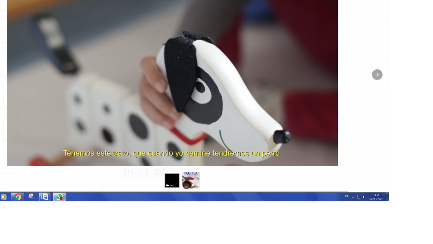 La veu de l’Aurora Vélez, que junt amb el Denys Santa Marina i la Glòria Samanes, tots fisioterapeutes, formen el grup de Rehabilitació Infantil, introdueix el curtmetratge titulat “Peu pla”. “Un, dos i tres, amunt. Aguanta. Busca l’equilibri. Molt bé! Posa el peu pla”, diu l’Aurora. La Berta segueix les instruccions, i amb esforç i la tècnica que li ha ensenyat l’equip de fisioterapeutes aconsegueix posar-se de peu i aguantar-se sola. El títol “Peu pla” resum aquesta fita. “La nena tenia dificultats per posar el peu pla perquè tenia els bessons escurçats i aquest pas era l’inici per començar a caminar”, explica el Denys Santa Marina, una de les ànimes del projecte dirigit per la Maria Besora.