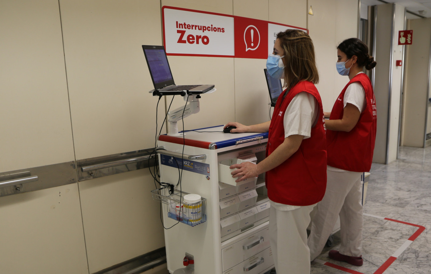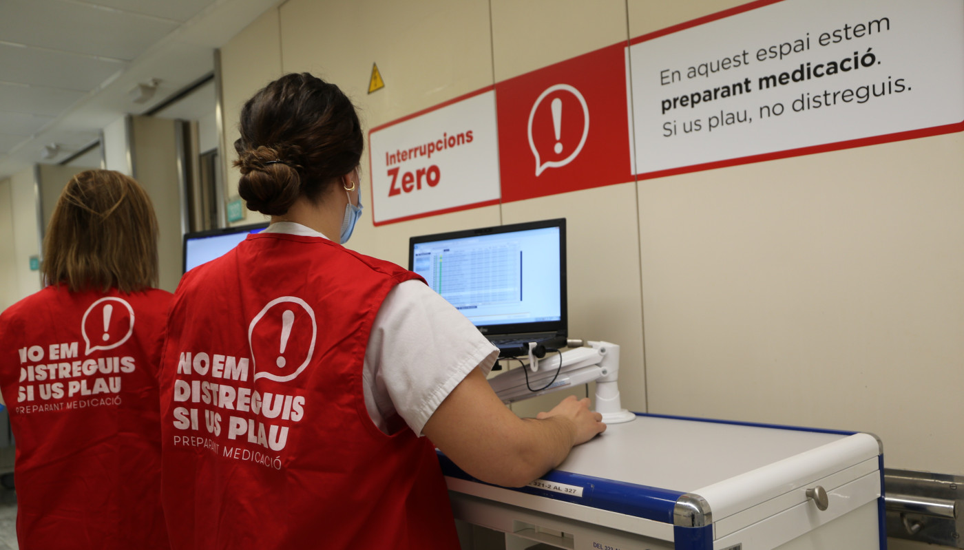 A l’hospital, les infermeres són les responsables de la preparació i administració de fàrmacs, activitat considerada d’alt risc i que precisa un espai lliure d’interrupcions. Amb l’objectiu de garantir la seguretat dels i les pacients, s’ha desplegat el projecte ‘Interrupcions Zero’, que inclou una sèrie d’accions destinades a professionals i pacients per fomentar i conscienciar sobre la importància de no interrompre al personal d’infermeria durant la preparació i administració de fàrmacs.