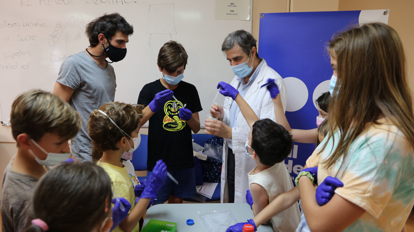 A més del virus de la COVID-19, coneixien o havien sentit a parlar del virus de l’hepatitis, l’especialitat del doctor, o del de la poliomielitis. Però el més interessant va ser descobrir com treballen al laboratori amb els virus. El fil d’aquest casal són els experiments científics. Els coordinadors, FunBrain, són comunicadors i divulgadors de l’àmbit de la ciència i la tecnologia per al públic infantil i juvenil, que treballen amb la comunitat educativa. I el seu fort és fomentar la curiositat i l’interès per la ciència a través d’experiments i desafiaments. Totes les activitats juguen amb mètodes diagnòstics, materials innovadors i el treball emocional. Per entendre com es treballa amb els virus al laboratori, el Dr. Josep Quer va portar suc de pinya i el van tractar com si fos una mostra: posar-la dins la pipeta, rotular-la... A més van fer un parell d’experiments: un per entendre com reaccionen els anticossos amb una pseudo mostra de sang i un altre per descobrir l’ADN en una mostra de saliva.