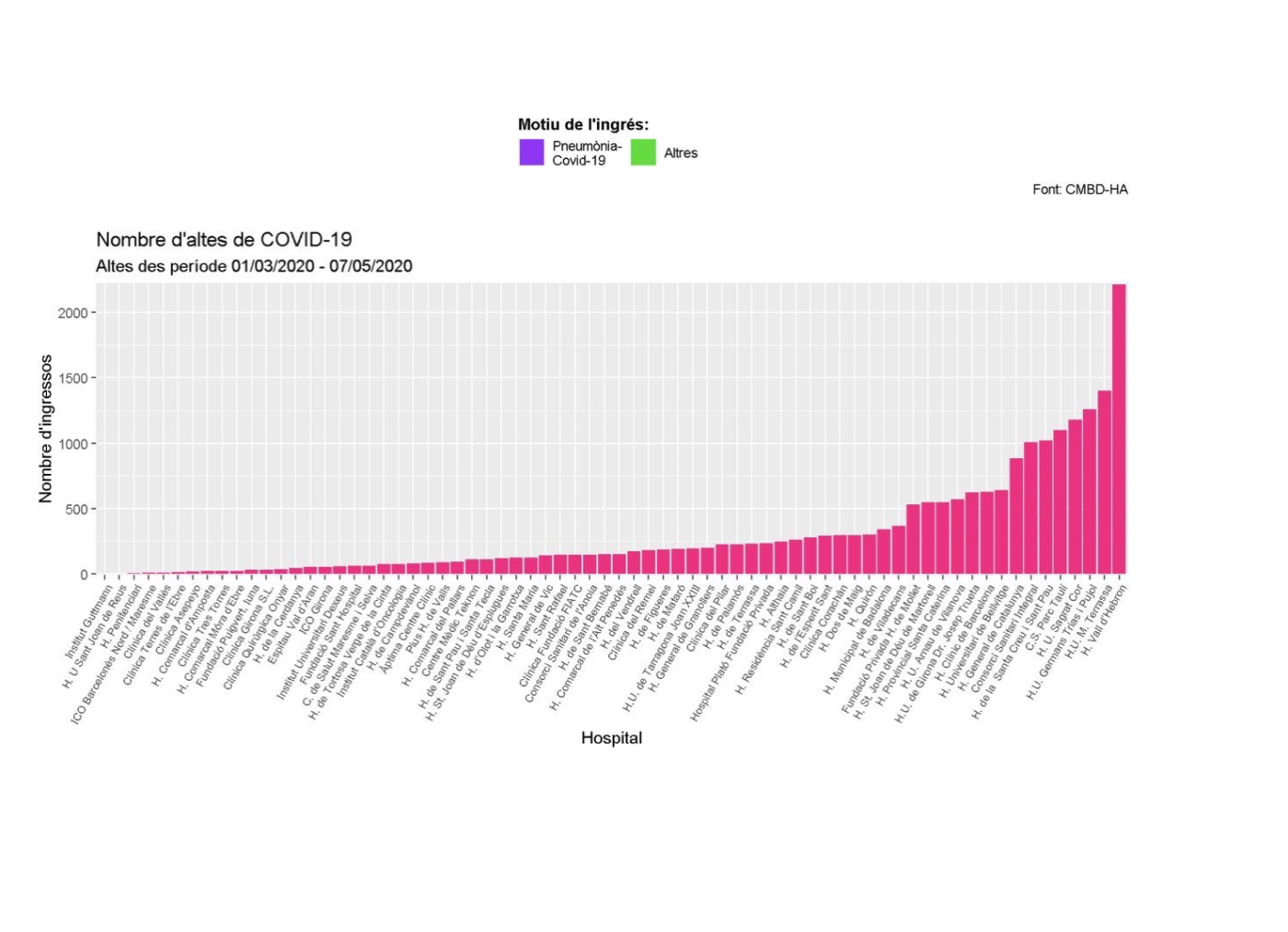 Tal com indica un informe de l’Agència de Qualitat i Avaluació Sanitàries de Catalunya (AQuAS), l’Hospital Universitari Vall d’Hebron és el centre hospitalari que més altes de COVID-19 ha donat de tota Catalunya. Concretament són 2.215 entre el període que va de l’1 de març al 7 de maig. En segona posició es troba l’Hospital Universitari Mútua de Terrassa amb 1.401 altes. Això revela que Vall d’Hebron ha donat fins a un 60 % més d’altes que el següent hospital del país.