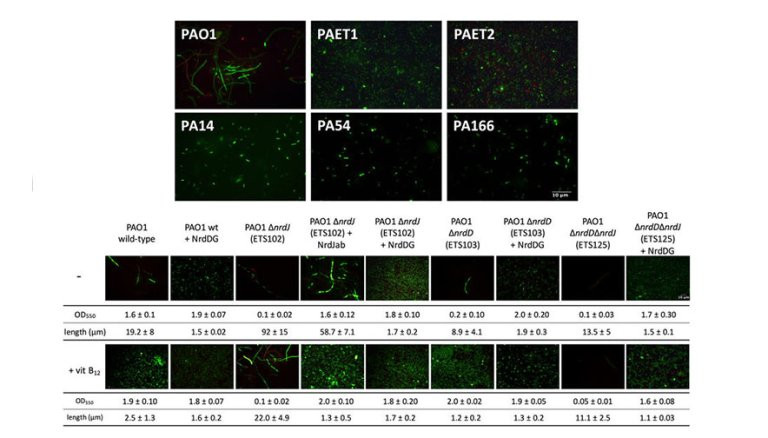 Els investigadors van descobrir que l’absència d’activitat de la RNR condueix a l’elongació cel·lular en el cep PAO1, la qual cosa indica falta de creixement. A més, l’expressió gènica de la RNR durant la anaerobiosis – processos que ocorren en absència d’oxigen – difereix entre els ceps clínics de P. aeruginosa i els emprats al laboratori, doncs la RNR de classe III s’expressa molt més en aïllats clínics de P. aeruginosa en comparació del cep de laboratori.