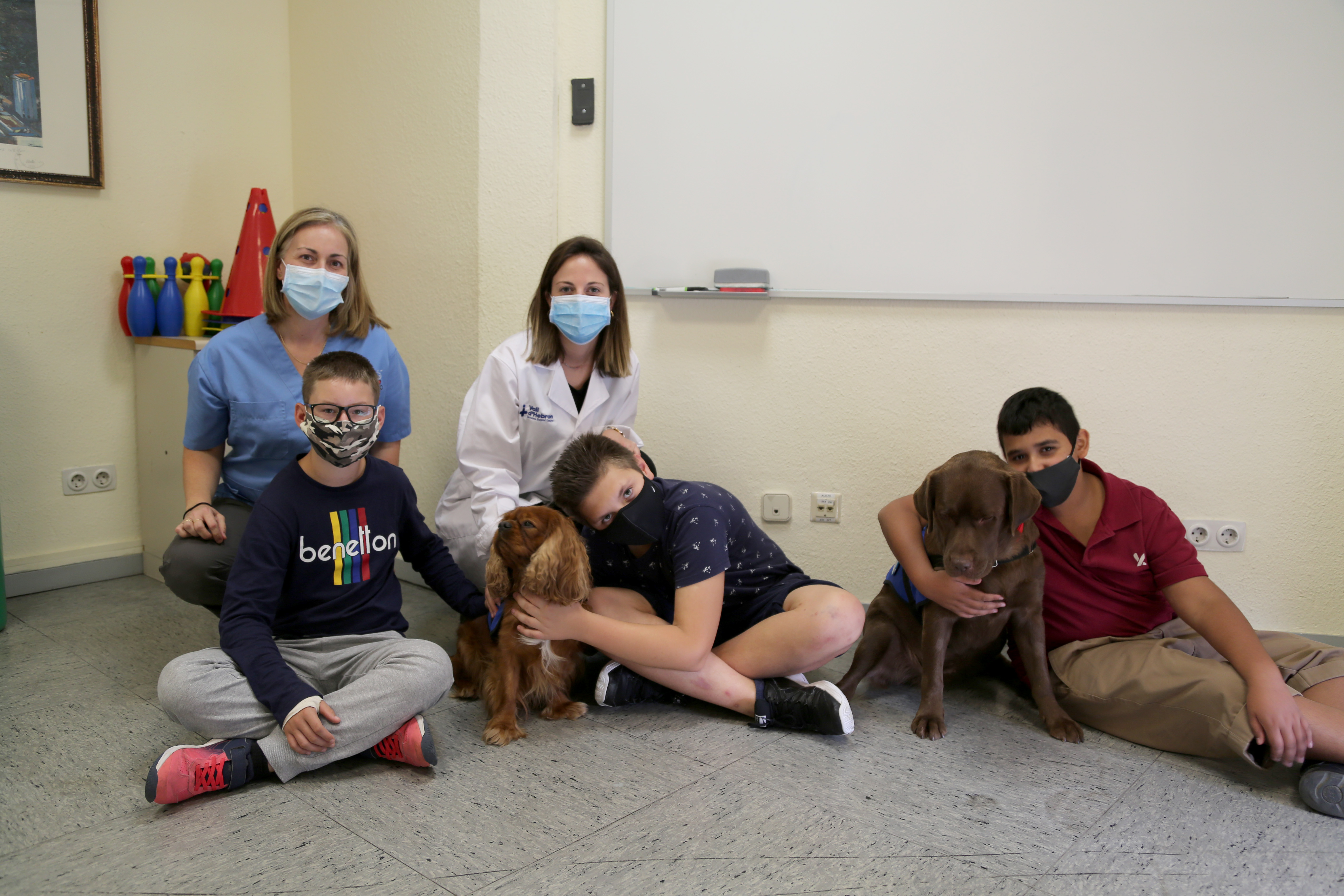 La implementació de la teràpia assistida amb gossos a Vall d’Hebron és fruit d’un acord amb la Fundació Probitas i la col·laboració de CTAC. Vall d’Hebron fa un seguiment multidisciplinari d’aquests pacients, ja que hi participen, en el tractament, el Servei de Psiquiatria, i, en el seu diagnòstic, l’esmentat servei i l’Àrea de Genètica i els Serveis de Neurologia, Radiologia i Neurofisiologia. Els Serveis d’Oftalmologia i d’Endocrinologia també participen valorant possibles complicacions. A Vall d’Hebron ja s’han tractat més de 400 nens i adolescents amb aquesta patologia en els últims tres anys.