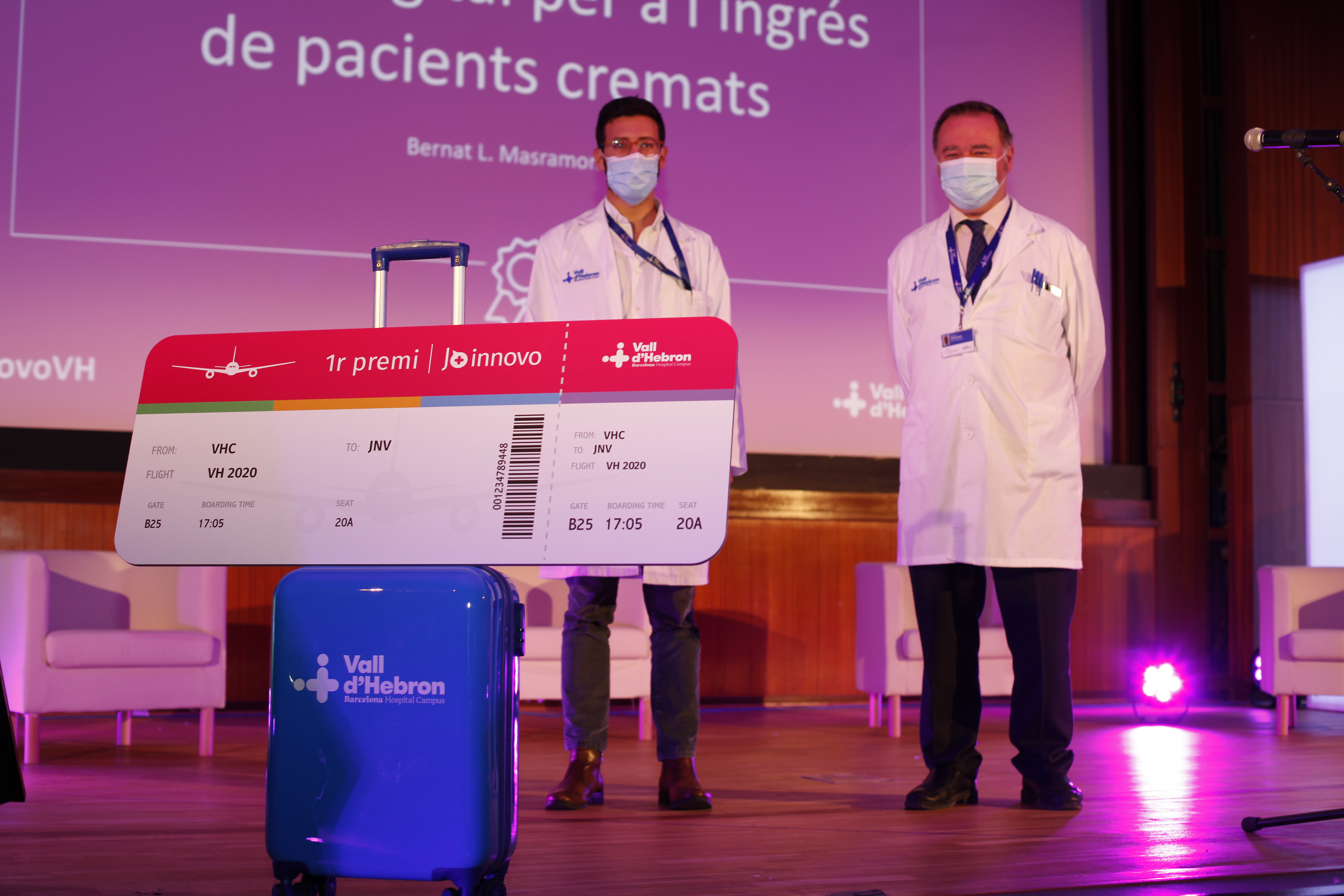L’impulsor del projecte guanyador ha estat el Dr. Bernat L. Masramon, metge resident del Servei de Cirurgia Plàstica i Cremats, que ha volgut agrair el premi als organitzadors, ha donat les gràcies als professionals que treballen amb ell i ha felicitat “tots els companys de Vall d’Hebron que també han participat al concurs Jo innovo presentant idees brillants”. El premi del concurs consisteix en un viatge per a dues persones per visitar un centre d’innovació de referència. A més, el Dr. L. Masramon podrà desenvolupar la idea l’ajuda de Vall d’Hebron i l’acompanyament d’experts i gaudirà de l’alliberament de les hores que hi dediqui.