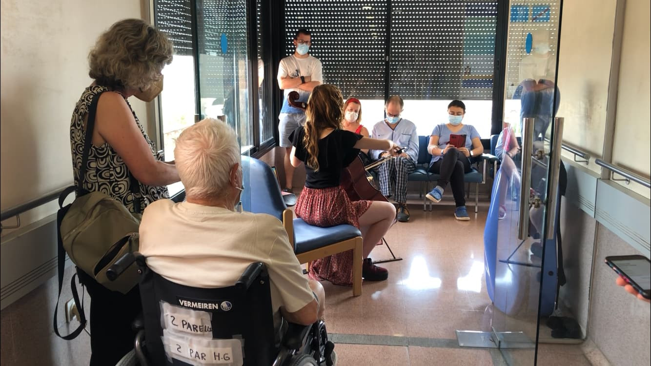 La Núria Conangla és la filla del Xavier. És músic professional i toca diversos instruments, però el principal és el violoncel. Toca tant música clàssica com moderna, fins i tot té un quintet de corda de heavy metal. En el passat ja havia tocat en residències de gent gran pel poder curatiu que té la música. “Per aquest motiu, vaig pensar que, després de tants dies ingressat, la música animaria el meu pare i altres pacients”. Un concert que ha interpretat avui, 21 de juny, Dia Europeu de la Música. La Núria també ha volgut dedicar el concert al personal de Vall d’Hebron, ja que “n’estem molt agraïts, tant jo com el meu pare i tota la família, del tracte que hem rebut”.