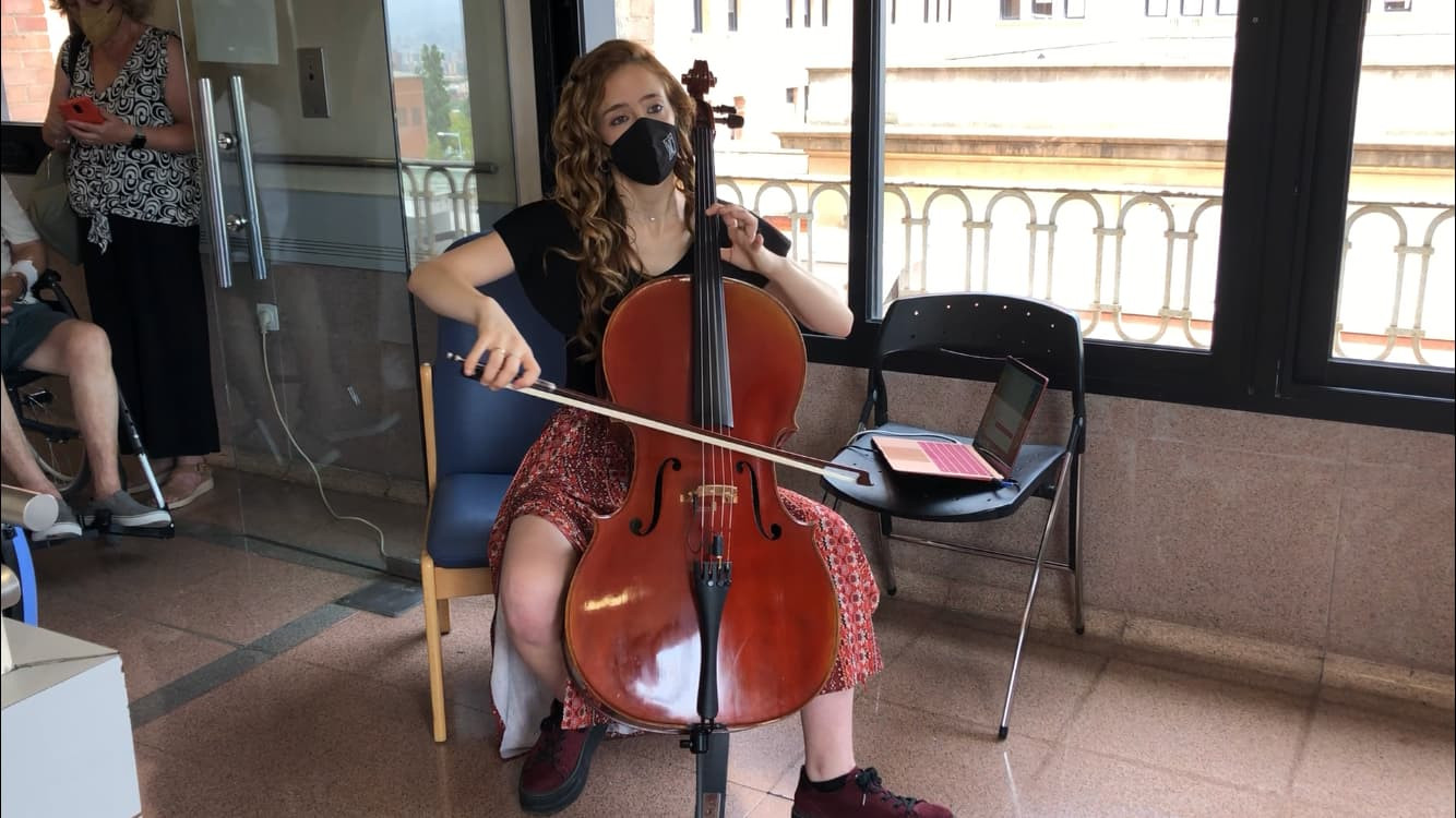 Una violoncel·lista fa un concert des de la planta d’hospitalització per al seu pare ingressat