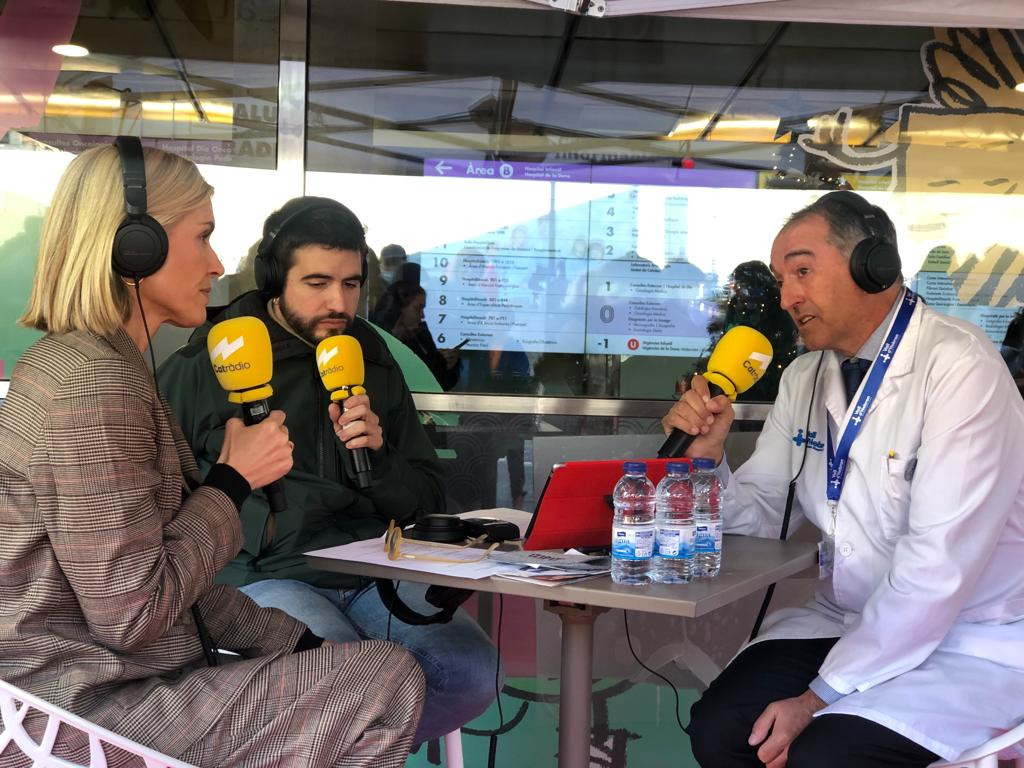 Després d’una cagada de regals del Tió Solidari, El matí de Catalunya Ràdio ha continuat amb una taula rodona sobre oncologia pediàtrica on han participat el Dr. Lucas Moreno, cap d’Oncologia Pediàtrica, l’Esther Diaz, supervisora d’infermeria d’Oncologia Pediàtrica, i l’Anna Bosch, presidenta de la Fundació A.Bosch. Però l’estrella de la taula rodona ha estat la Mercè Zamora, una noia de quinze anys en tractament per una leucèmia a Vall d’Hebron, que ha aportat el seu testimoni acompanyada del seu pare, en Pep. La Mercè vol ser actriu quan sigui gran i ha explicat que afronta la seva malaltia ajudant-se de la seva arma secreta, la comèdia. “Quan surto de la quimio, faig broma interpretant un ésser radioactiu”, ha posat com a exemple. Cada any, entre 120 i 140 nens, nenes i adolescents reben tractament de malalties oncològiques a Vall d’Hebron. Tots ells es beneficiaran de Realitat Millorada, el projecte de reforma integral de l’Àrea d’Hospitalització d’Oncologia i Hematologia Pediàtriques de Vall d’Hebron possible gràcies a la col·laboració de la Fundación Aladina, la Fundació A. Bosch i la Fundación Small.