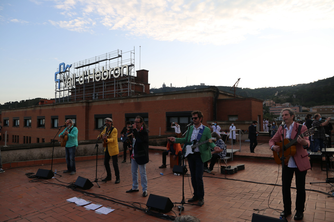 D’entre totes les accions que han tingut lloc durant la diada a Vall d’Hebron per retre homenatge als tots els herois i heroïnes, la més espectacular ha estat el concert sorpresa que Los Manolos han interpretat des del terrat situat a la planta 11 de l’Hospital General. Pocs minuts abans de les vuit, l’hora en què els ciutadans surten al balcó per dedicar un aplaudiment al personal sanitari, l’emblemàtic grup de rumba catalana ha tocat All my loving. Després de l’aplaudiment han fet una versió d’Amics per sempre recentment estrenada per donar ànims als professionals de la salut i una cançó més.