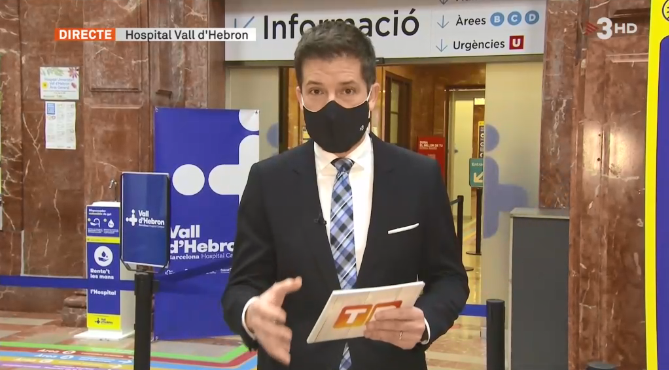 Aquest dijous, 25 de febrer, el Telenotícies vespre de TV3 s’ha emès des de l’Hospital Universitari Vall d’Hebron, amb motiu del primer aniversari de l’inici de la pandèmia de la COVID-19 a Catalunya. El programa va escollir Vall d’Hebron per ser el plató d’aquest TN tan especial perquè és l’hospital més gran de Catalunya i el que més pacients COVID-19 ha tractat durant la pandèmia.