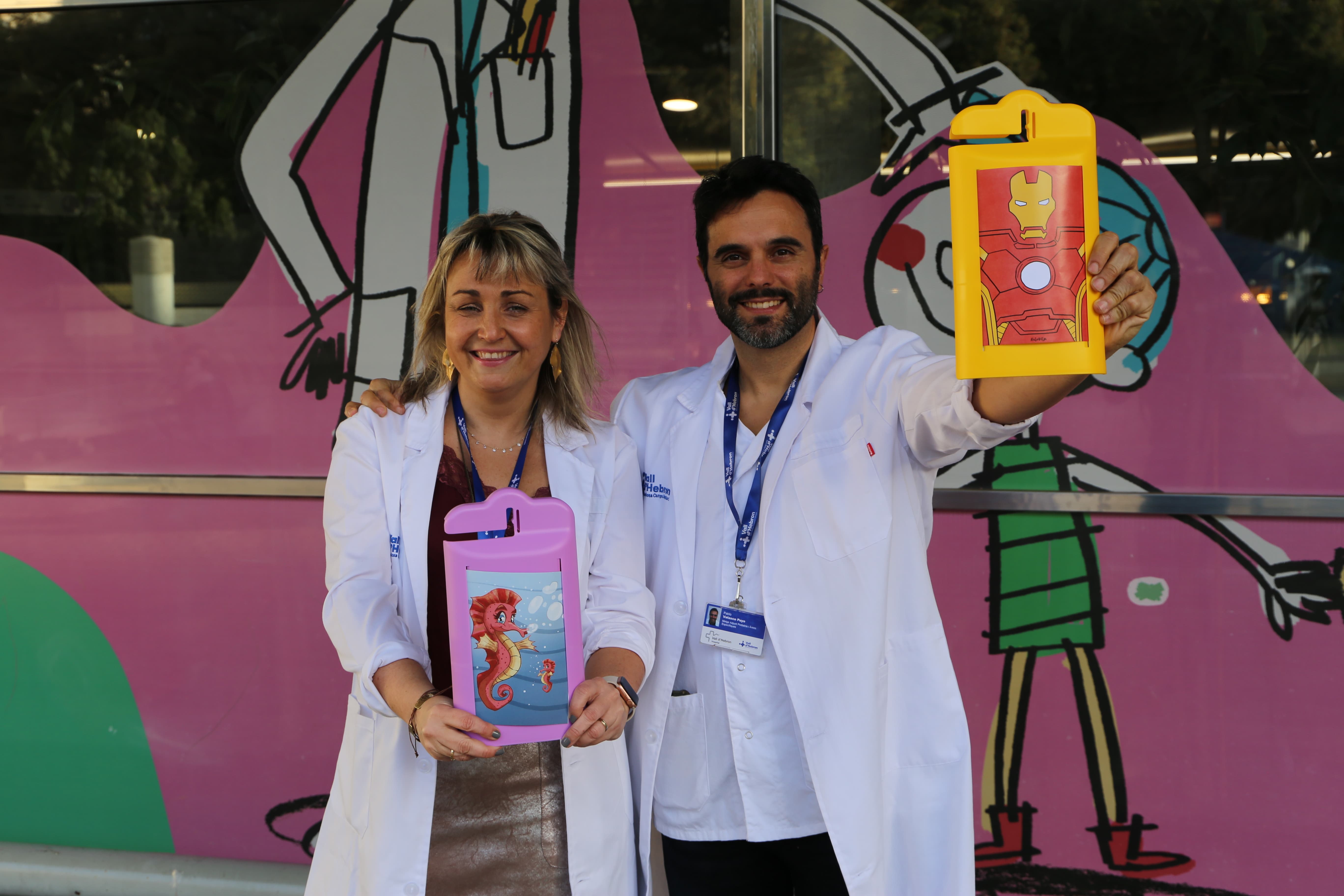 Per desenvolupar el projecte, es va crear el Superbox Think Tank, un equip interdisciplinari que comptava amb professionals de Medicina, Infermeria, Psicologia, Treball Social, Farmàcia i Enginyeria Biomèdica. I, amb la metodologia de Design Thinking, per generar solucions innovadores a l’entorn sanitari, van sortir aquestes cobertures amb plàstic ecològic, 100% reciclables, resistents a productes d’esterilització i universals per a tota mena de pals i sèrums. “A més, una part està al descobert per facilitar la identificació, la manipulació i la monitoratge i, sobretot, totes tenen el valor afegit de la humanització, es poden personalitzar amb imatges i aquest detall fa que els pacients s’entretinguin amb una cosa que abans els hi generava angoixa”, comenta el Dr. Pablo Velasco.