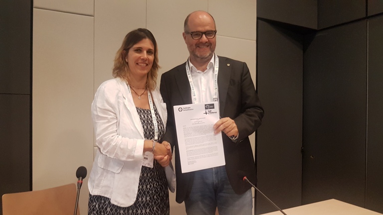 Aquest conveni es va iniciar fa un any i mig amb la Dra. Cuxart, la Dra. Rodríguez, la Dra. Sánchez Raya i amb l’equip del VHIR anaven perfilant el grau de col·laboració, que ha anat canviant per conveni de Cochrane amb Cochrane Rehabilitation. Però no va ser fins al passat 9 de juliol quan en el marc del 12è Congrés Internacional de Medicina Física i Rehabilitació celebrat a París, la Dra. Judith Sánchez Raya va signar amb el Dr. Stefano Negrini l’acord que acreditava la col·laboració entre ambdues associacions.