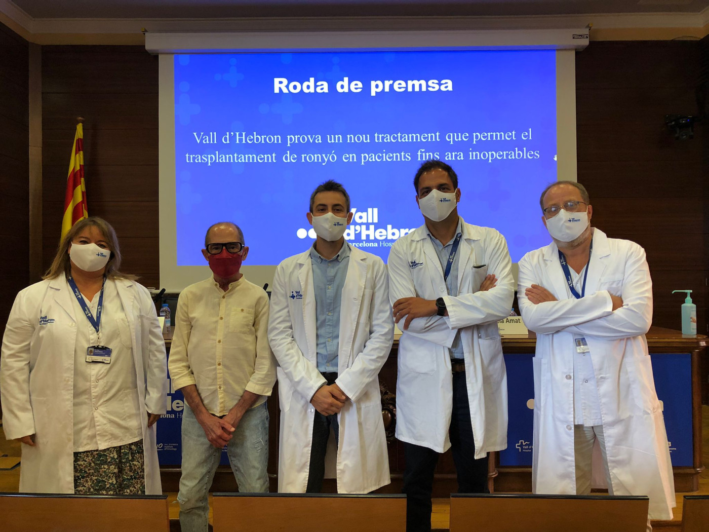 El primer pacient a Vall d’Hebron en participar en aquest estudi ha estat un home de 54 anys que des del 1984 requeria diàlisi a causa d’una malformació en les vies urinàries que li van causar l’aparició progressiva d’insuficiència renal crònica terminal. Després de dos intents de trasplantament el 1991 i el 1996 sense èxit, el sistema immunitari del pacient va quedar sensibilitzat i els seus nivells d’anticossos eren molt elevats, la qual cosa ha fet impossible trobar un donant compatible durant tots aquests anys.