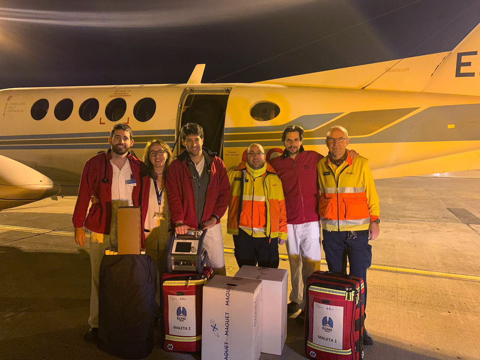 L'ECMO Team de Vall d'Hebron va aterrar a l'aeroport d'Eivissa a les 21:15 hores i a les 4:30 hores arribaven amb el pacient a l'UCI de Vall d'Hebron. El treball conjunt de tots els professionals va fer possible que en un espai molt curt de temps es poguessin desplaçar, canular al pacient, estabilitzar-lo i traslladar-lo en avioneta.