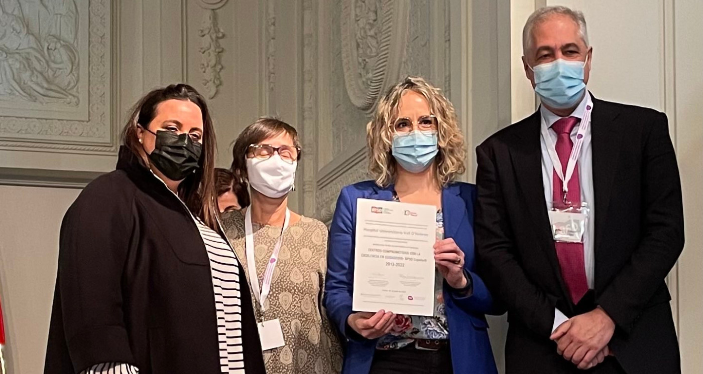 L'Hospital Universitari Vall d'Hebron ha rebut durant el Simposi de Centres Compromesos amb l'Excel•lència en Cures (CCEC®/BPSO®), que s'ha celebrat a Madrid, el reconeixement pels seus 10 anys com a centre compromès amb l'Excel·lència en les Cures.