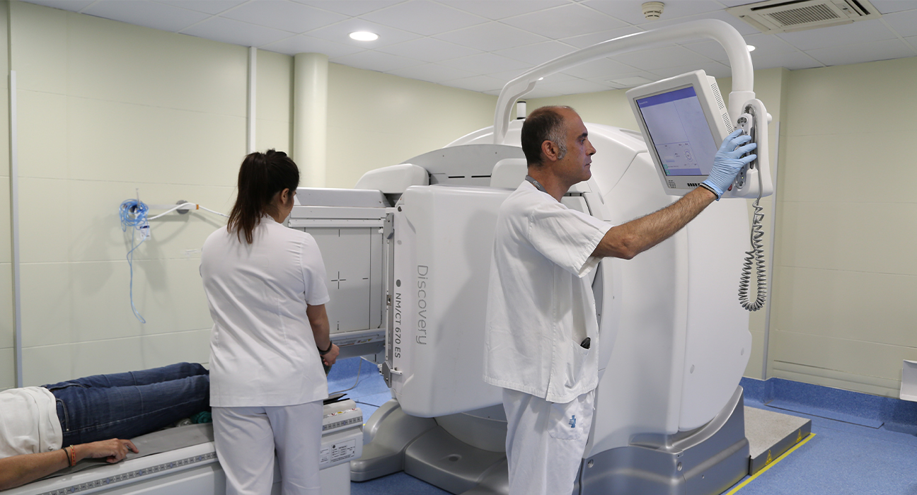 La Medicina Nuclear és una especialitat mèdica dedicada principalment al diagnòstic de pacients mitjançant l’ús de substàncies marcades amb radioisòtops, que proporciona una informació essencialment funcional. També, al tractament amb fonts radioactives no encapsulades.