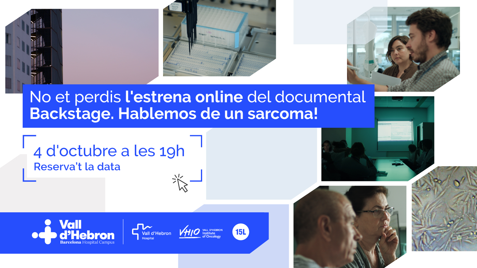 Este domingo 4 de octubre a las 19:00 h, se estrena online el documental Backstage. Hablemos de un sarcoma, un proyecto que nació hace dos años tras la experiencia de la familia de una paciente que falleció en el Hospital Vall d’Hebron después de luchar contra un sarcoma y que quiso mostrar en un documental el proceso por el que pasaron durante la enfermedad. Carlota Coloma, directora de la productora 15LFilms y alma mater de Backstage, quiso abordar este proyecto como parte final del duelo que estaba realizando por el fallecimiento de su madre y para ayudar a otras familias que estuvieran pasando por lo mismo, explicando cómo investigadores y oncólogos trabajan conjuntamente para encontrar tratamientos más eficaces para este tipo de cáncer minoritario. Algo que para ellos era desconocido hasta que tuvieron la oportunidad de hablar con el Dr. César Serrano, oncólogo médico especialista en sarcomas de Vall d’Hebron e investigador principal del grupo de Investigación Traslacional en Sarcomas del VHIO. “Mi madre tuvo la oportunidad de preguntar, de saber, de conocer, de entender. Aquella conversación nos llenó de paz, a mi madre y a toda la familia, y por ello estamos muy agradecidos a aquel momento con el Dr. Serrano, sentado a los pies de la cama de mi madre, no lo olvidaré jamás”, explica Carlota. “Cuando eres paciente tienes la sensación de no saber qué pasa entre que tu médico sale por la puerta de la consulta hasta que vuelve a entrar o te vuelve a ver en la siguiente visita. Crees que no pasa nada. Que estás solo. Y después de aquella conversación con el Dr. Serrano tuvimos muy claro que pasaban muchas cosas que no sabíamos, que no era un tiempo muerto”, sigue Carlota.