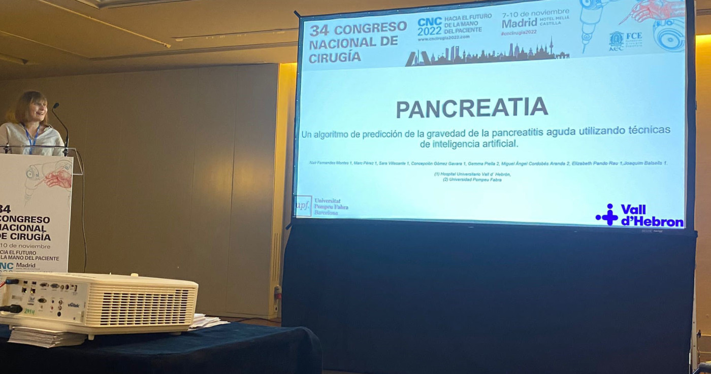 El uso de inteligencia artificial puede ayudar a predecir la gravedad de enfermedades como la pancreatitis aguda. El desarrollo de un algoritmo predictivo es el objetivo del proyecto PANCREATIA, presentado en el congreso por la Dra. Nair Fernandes, del Servicio de Cirugía Hepatobiliopancreática y Trasplantes del Hospital Vall d’Hebron e investigadora del VHIR. Este algoritmo, desarrollado gracias a una base de datos de pacientes con pancreatitis aguda desde 2016, analiza las características basales de los pacientes, sus síntomas y los datos del examen físico a la llegada al hospital y ofrece un alto rendimiento para predecir las complicaciones y mortalidad en esta enfermedad.