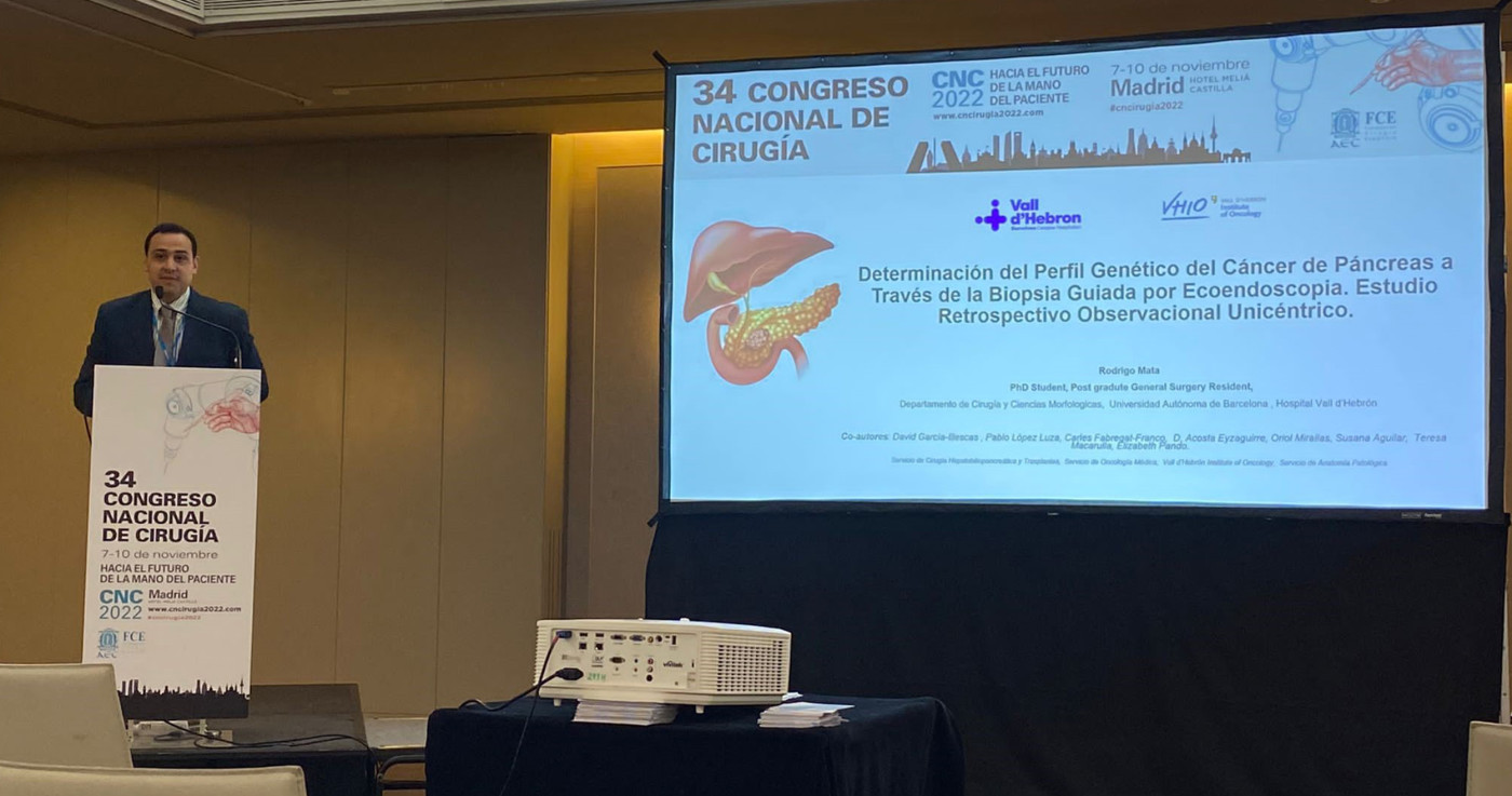 Entre los días 7 y 10 de noviembre de 2022, se celebró en Madrid el XXXIV Congreso Nacional de Cirugía, el cual reúne a profesionales de todo el Estado para presentar las últimas novedades en el campo de la cirugía y fomentar la colaboración. Entre las áreas de interés de las jornadas se encuentra la cirugía pancreática. En esta especialidad, se presentaron tres comunicaciones orales y un póster por parte de los Servicios de Cirugía Hepatobiliopancreática y Trasplantes y de Oncología Médica del Hospital Universitario Vall d’Hebron, como parte del Comité Multidisciplinar de Cáncer de Páncreas.
