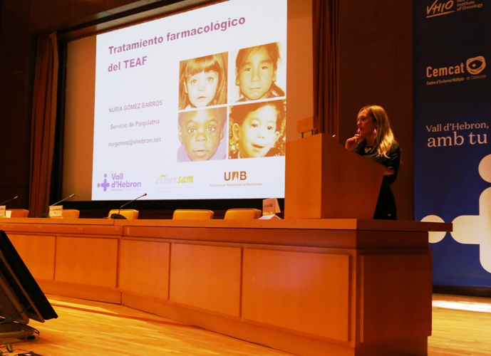 Además, la Dra. Nuria Gómez ha abordado el tema del tratamiento farmacológico. “No hay una terapia farmacológica específica para los pacientes que sufren un trastorno del espectro del alcoholismo fetal. El tratamiento farmacológico se da para el control de los trastornos psiquiátricos asociados, puesto que el 87% por ciento de los pacientes tienen un trastorno como TDAH, ansiedad o trastorno negativista”.