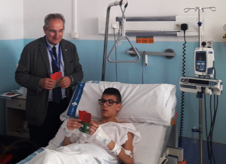 Mensajes de ánimo, de superación, de alegría; testimonios de personas que han superado una enfermedad; dibujos para los más pequeños; mensajes en diferentes idiomas… han llenado de cariño y energía las rosas tan especiales que han recibido los pacientes del Hospital. Por ejemplo, Xavi, paciente adolescente, ha recibido la rosa de manos del Dr. Vicenç Martínez Ibáñez, gerente del Hospital Universitari Vall d’Hebron, y el Sr. Enric Ticó, presidente de FGC. “Te hablo desde una depresión que ni yo mismo entiendo. Pero hoy, en Sant Jordi, es un día para dejar de lado los obstáculos que la vida te pone y disfrutar del amor, las flores y la lectura”, ha leído en voz alta Xavi.