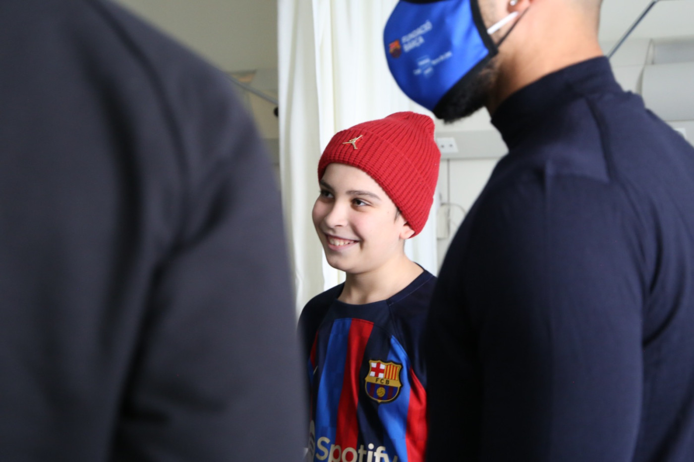 El portero del FC Barcelona, Marc ter Stegen; Ousmane Dembélé, que tanto chuta con la izquierda como con la derecha; Memphis Depay; Frank Kessié y el joven de Vic, Arnau Tenas, acompañados por el segundo entrenador del Barça, Òscar Hernández i Elena Fort, en nombre de la directiva, han llevado hoy mucha alegría en el Hospital Infantil de Vall d'Hebron. Después de dos años en los que el virus de la COVID-19 había obligado a restringir el acceso a los hospitales, los jugadores de fútbol del primer equipo del FC Barcelona han podido retomar la tradicional visita por Reyes a los niños y adolescentes hospitalizados en Vall d’Hebron y otros centros. Este 2 de enero ha sido muy especial para el equipo de Xavi Hernández y para las plantas de hospitalización del Hospital Infantil de Vall d’Hebron. Para los jugadores, el día ha empezado con el entreno de puertas abiertas en el Camp Nou que cada año se hacía en Navidad. Con las entradas, que tienen un coste simbólico de 6 euros por el público general y 3 euros por los socios, se financia el Proyecto Robots del Programa de Bienestar Emocional Pediátrico de la Fundación FC Barcelona, que permite a los niños hospitalizados vivir la experiencia del Barça a través de un robot con conexiones de audio y video. Los robots llevan el nombre de un niño y una niña, Pol y Joyce, que habían colaborado con la Fundación del Barça y murieron a consecuencia de un cáncer. Gracias al robot Pol, Jan un niño hospitalizado en la planta de Hematología y Oncología, ha conectado en directo con el Camp Nou para seguir todo el entreno, saludar los jugadores e incluso charlar un rato con Xavi Hernández, Sergio Busquets i Robert Lewansdowski.