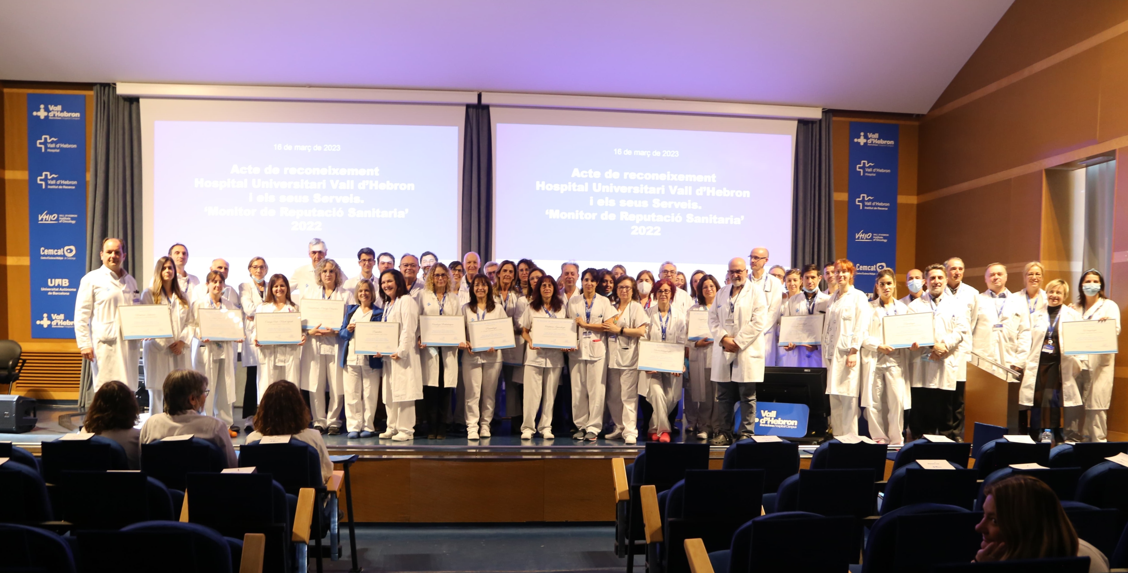 El Monitor de Reputación Sanitaria (MRS), impulsado por Merco (Monitor Empresarial de Reputación Corporativa), ha dado hoy los diplomas a los Servicios del Hospital Universitario Vall d'Hebron que aparecieron en las primeras posiciones en el ranking que publicó este organismo el pasado mas de mayo sobre los mejores hospitales del Estado durante el 2022. El MRS es el único estudio independiente que analiza la reputación del sistema sanitario español. Para realizar el estudio, se usa una metodología que combina la percepción del público con la realidad del sector. El estudio evalúa la reputación sanitaria en diferentes categorías: Servicios Hospitalarios, Hospitales, Laboratorios Farmacéuticos, Empresas de Tecnología, Empresas de Dispositivos Biomédicos, Aseguradoras de Salud, Centros de Salud y Fabricantes de Productos Sanitarios. Merco cuenta con el apoyo de un consejo asesor formado por representantes del Consejo General de Médicos y del Consejo General de Enfermería, asociaciones de pacientes, periodistas y comunicadores sanitarios, así como personas de reconocido prestigio y trayectoria en la sanidad española.