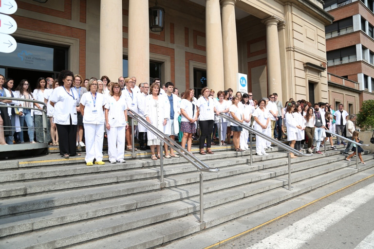 Los profesionales de Vall d’Hebron han guardado un minuto de silencio en recuerdo a las víctimas de los atentados de Barcelona y Cambrils del 17 de agosto del año pasado y para manifestar su rechazo al terrorismo. Los ataques terroristas causaron la muerte de 16 personas y provocaron heridas a más de 130.