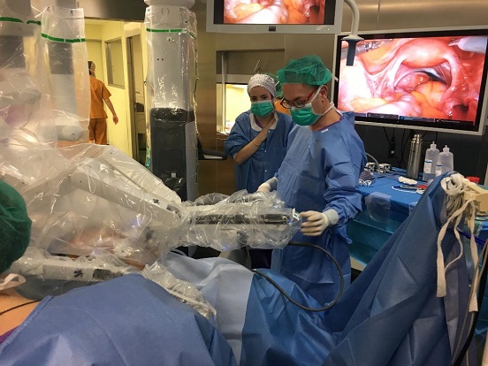 El Hospital Maternoinfantil Vall d’Hebron ha incorporado la última tecnología en el campo de la cirugía gracias al nuevo robot Da Vinci Xi. Este robot permite realizar cirugía robótica mínimamente invasiva y sustituye el anterior modelo, que es el Da Vinci S. La primera cirugía realizada con este robot en el Hospital Maternoinfantil se llevó a cabo en una paciente con cáncer de cuello uterino en estadio Ib1. Por lo tanto, se realizó una cirugía laparoscópica asistida con este robot, que consistió en una histerectomía radical tipo C1 (extirpación del útero y el cuello uterino con preservación de los nervios de la zona) y una linfadenectomía pélvica (extracción de los ganglios linfáticos de la pelvis). Cómo explica el Dr. Antonio Gil Moreno, jefe del Servicio de Obstetricia y Ginecología del Hospital Universitario Vall d’Hebron, “es una cirugía muy compleja, puesto que hace falta disecar los espacios que no presentan vasos sanguíneos para preservar los nervios de la zona, que inervan la vejiga, la vagina y el recto”. El Dr. Gil añade que “la cirugía transcurrió sin problemas y la paciente recibió el alta 60 horas después del postoperatorio. Se trataba de una intervención que requería una gran precisión, hecho que nos permite el robot Da Vinci Xi”. En la intervención participaron el Dr. Gil y también la Dra. Berta Diaz Feijoo, del Servicio de Obstetricia y Ginecología, y el Dr. Vicente Bebia, que fue residente en el mencionado servicio. El Servicio de Ginecología ya ha realizado nueve cirugías con este robot. Por otro lado, el Dr. Carlos Giné, especialista en Cirugía Digestiva Pediátrica de Vall d’Hebron, ya ha llevado a cabo dos intervenciones con el Da Vinci Xi. Una intervención para evitar el reflujo gastroesofágico, que era compleja porque había que ser muy preciso en la remodelación del estómago, y una remodelación de la uretra a nivel de pelvis renal para mejorar el paso de la orina en una paciente que tenía problemas en este sentido. Robot Da Vinci Xi El robot Da Vinci Xi está formado por tres elementos principales. Una consola quirúrgica, donde está situado el cirujano, que controla desde aquí los instrumentos quirúrgicos mediante dos manipuladores y pedales. El carro del paciente, que tiene cuatro brazos móviles que intervienen directamente sobre este. Y la torre de visión, que permite visualizar la cirugía mediante cámaras.