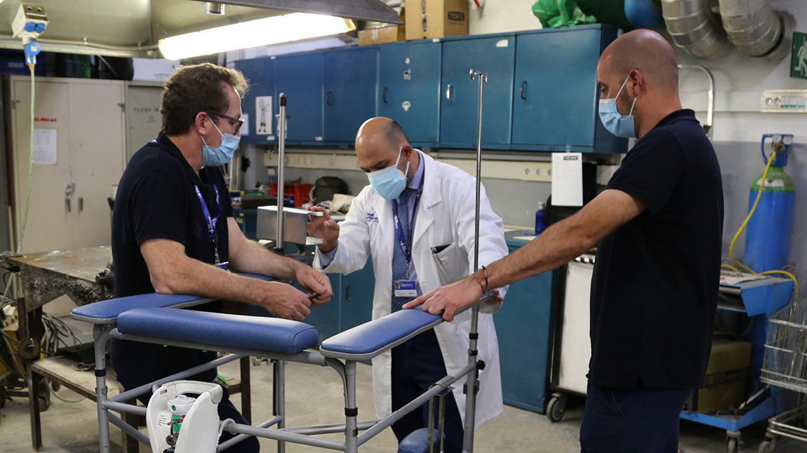 Después de ver el video de un paciente del Toronto General Hospital que usaba un caminador para levantarse después de un trasplante de pulmón, el Dr. Alberto Jauregui se puso en contacto con el Taller de Mantenimiento de Vall d’Hebron para ver si podían diseñar una herramienta similar. “Siempre estamos pensando en cómo mejorar la movilidad justo después de una intervención de trasplante pulmonar y este video nos dio la idea”, explica el Dr. Alberto Jauregui.
