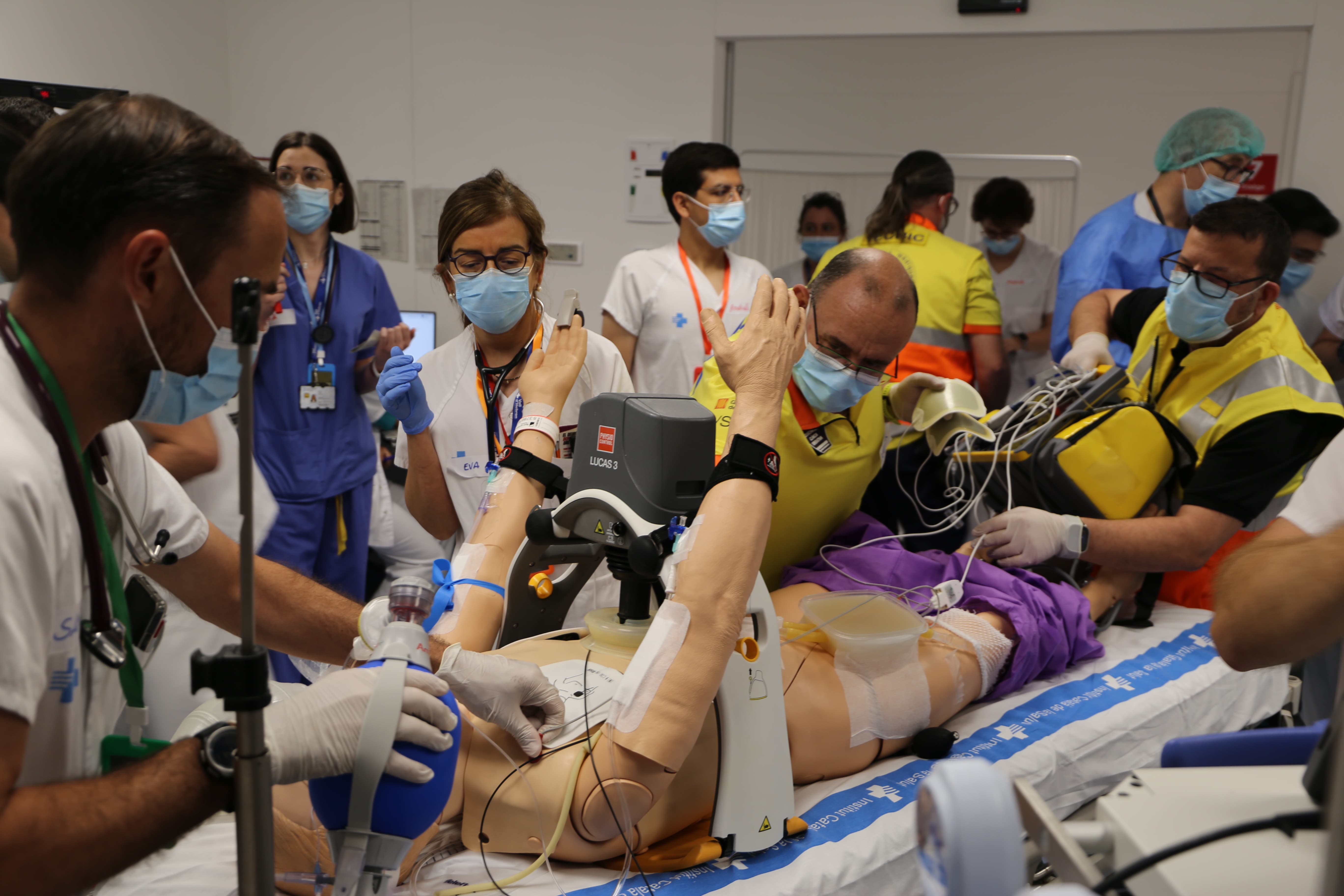 Estas técnicas complejas requieren la intervención y coordinación de equipos multidisciplinarios para evaluar la indicación, hacer el procedimiento y minimizar el tiempo que se emplea al aplicar la técnica. Un total de 64 profesionales entre médicos y enfermeros de los servicios de Medicina Intensiva, Urgencias, Cardiología, Coordinación de Trasplantes, además de médicos y técnicos en emergencias sanitarias del Sistema de Emergencias Médicas (SEM), han participado durante el 22, 23, 27 y 28 de junio en sesiones de seis horas eminentemente prácticas para realizar ECPR y DANC siguiendo las recomendaciones y protocolos de Vall d’Hebron.